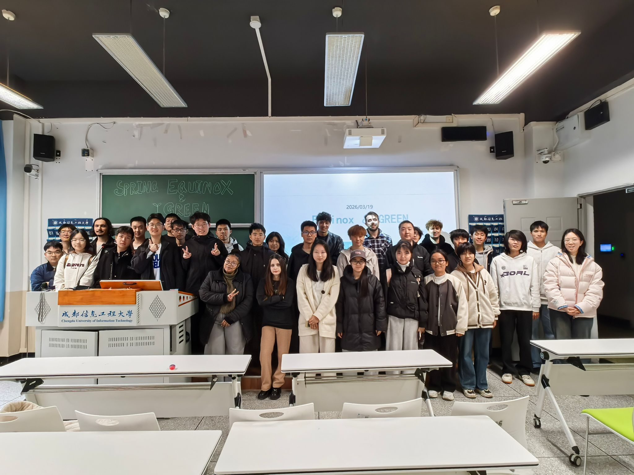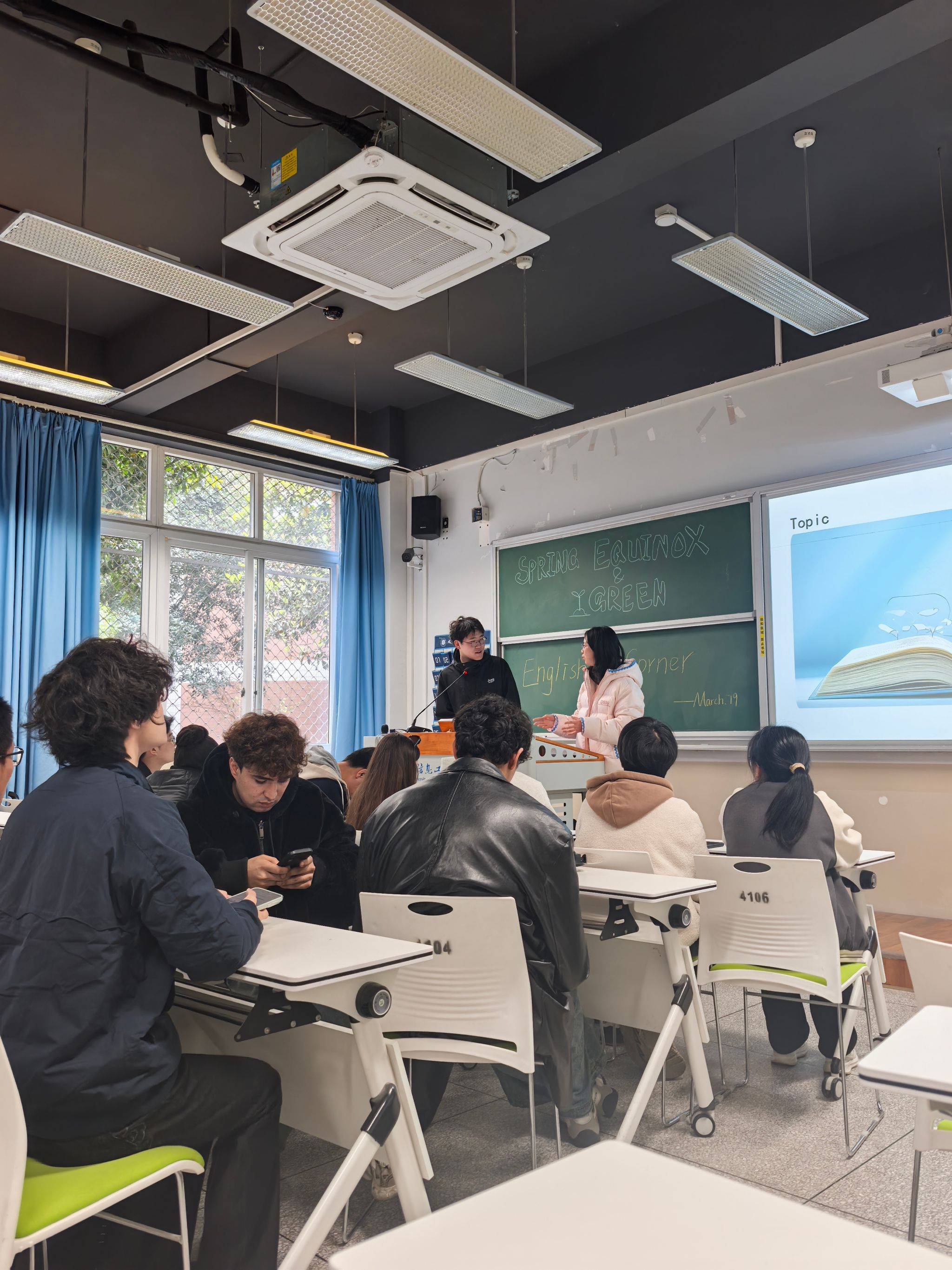 To celebrate the 24 Solar Terms, an essential part of Chinese culture, and to foster cross-cultural dialogue and environmental awareness among Chinese and international youth, the English Corner event themed "Spring Equinox and Green" was successfully held in Classroom 4104 at the Airport Campus from 14:00 to 15:00 on March 19, 2026. Organized by the Foreign Language Club, the event invited seven international guests, including foreign teachers and international students, to join local students in using English as a medium to explore the cultural significance of the Spring Equinox and share ideas on ecological protection.